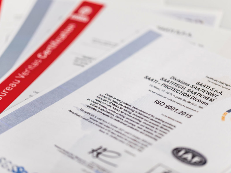 SAATI Quality Management System is the management system to direct and control our company with regard to quality. SAATI Quality&Management System is certified in compliance to ISO 9001:2015 standard, it covers all of our divisions activities.