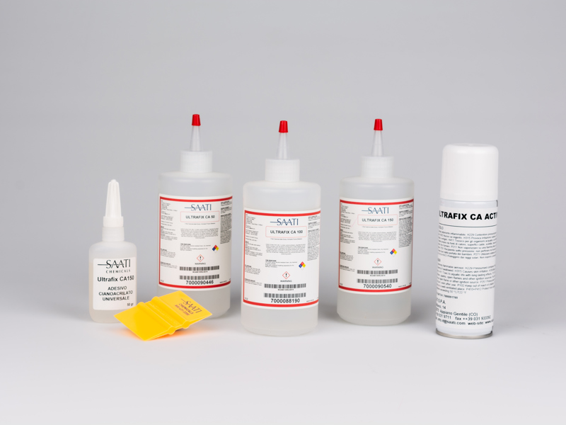 Clear spreadable adhesive with no mixing, available in three viscosities, that cures instantly with the application of Ultrafix CA Activator (spray can or pump)