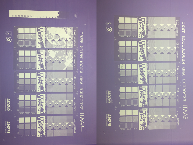 This handy guide is fixed to emulsion prior to exposure and upon developing reveals resolution and definition for 4 progressively shorter exposure times – 70%, 50%, 33% and 25% of the actual test. Compare the results between steps to make an informed decision about what result matches your exact needs.