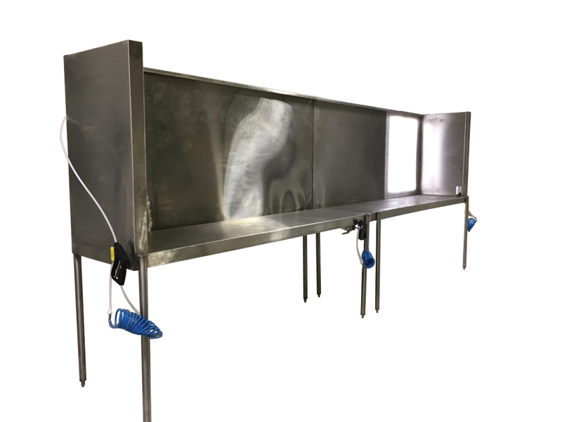 The integrated manual stencil disassembly line for the most efficient manual reclaim. Acting like a horizontal shelf, it’s possible to stack many flat screens at each stage of the reclaim process (improved further by SAATI DDU), allowing the chemical to do the hard work, minimizing scrubbing, and greatly increasing the productivity of the individual operator(s).