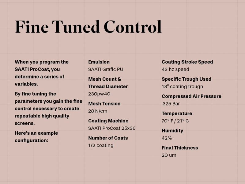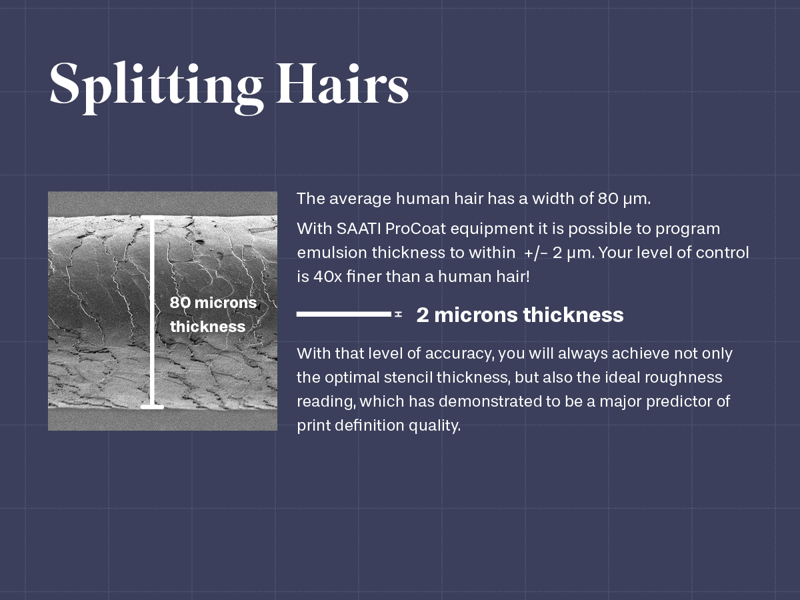 With SAATI ProCoat equipment it is possible to program emulsion thickness to within +/- 2 µm.