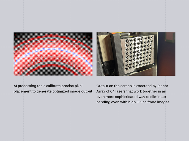 The Planar laser array that powers LTS 3.0 renders demanding halftone art with both the greatest speed and highest pixel placement accuracy to date